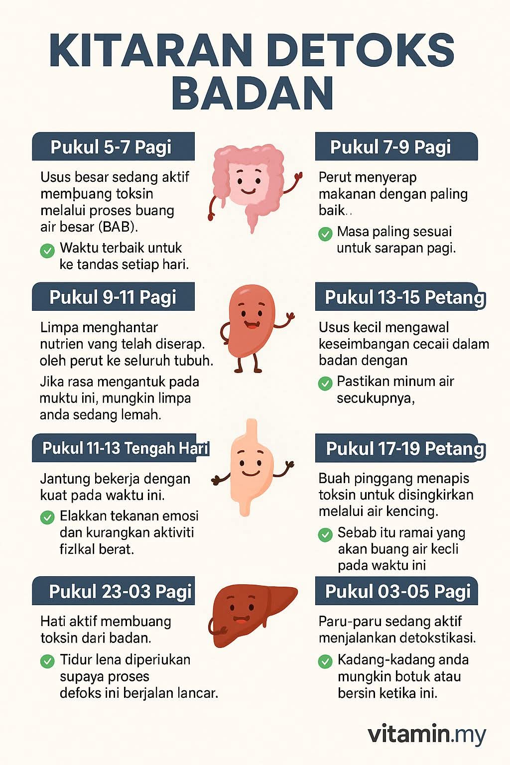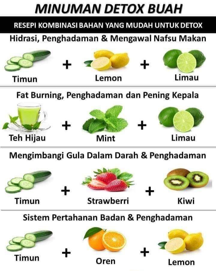 Bila badan dah terlalu “penuh” dengan toksin, organ tak lagi berfungsi pada tahap optimum. Detox ini ibarat reset button untuk tubuh kita!